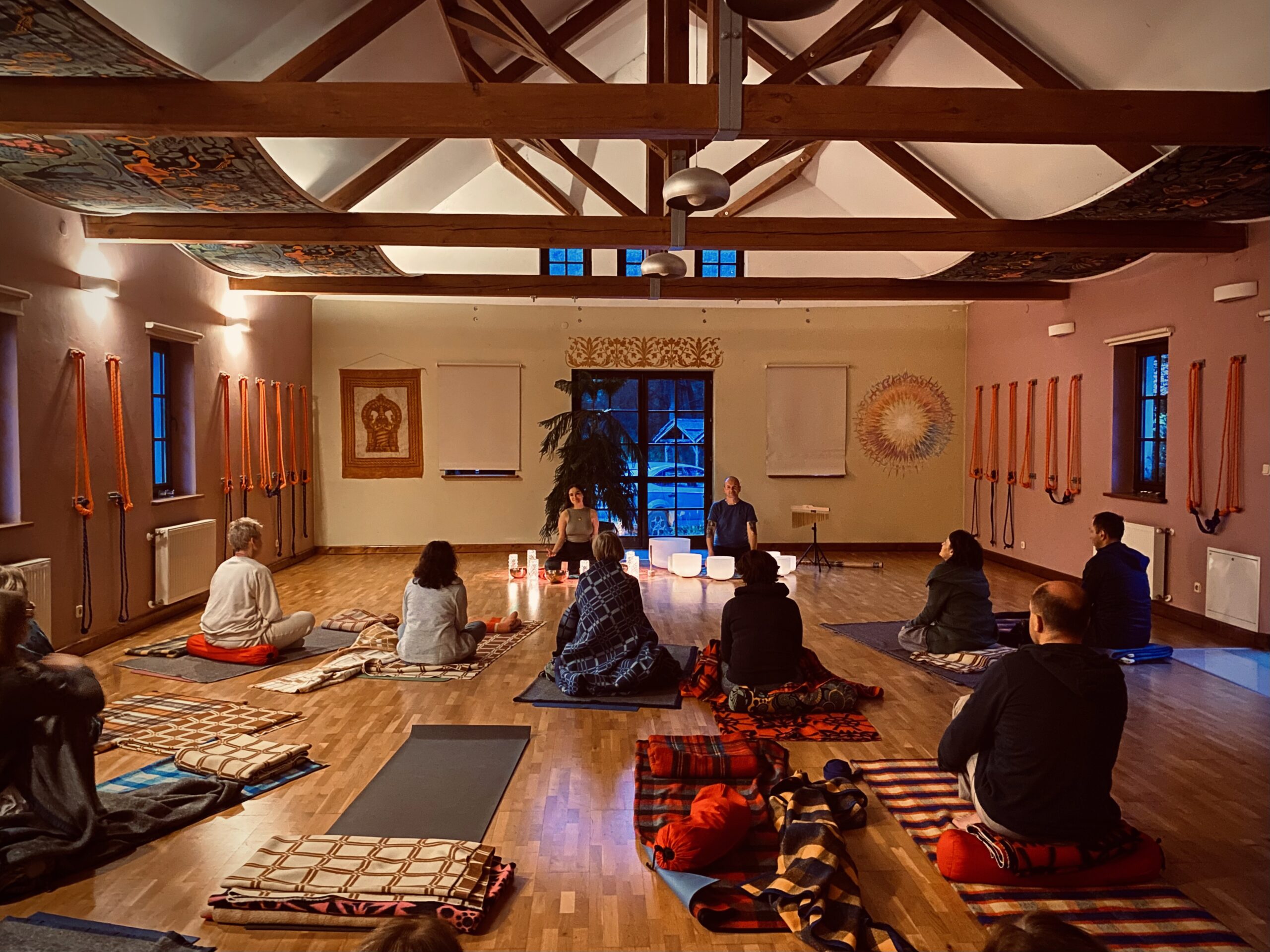 Zalecamy zabranie maty do jogi, koca lub poduszki, aby zapewnić sobie komfort podczas leżenia. Można też przynieść opaskę na oczy i wodę do picia po sesji.