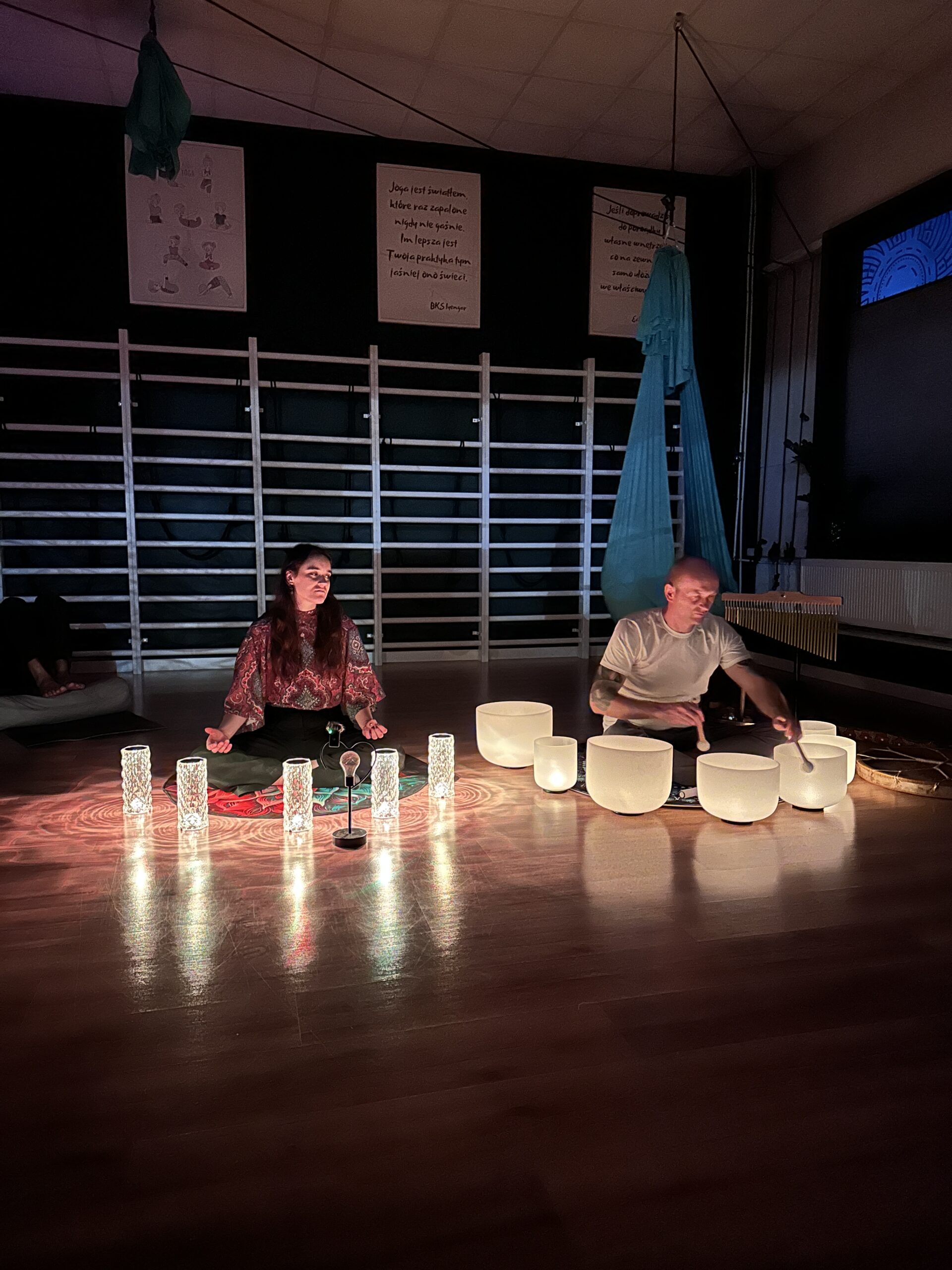 Nasze koncerty to nie tylko występy. Łączymy brzmienie mis kryształowych i śpiew intuicyjny, tworząc przestrzeń ukojenia, harmonii i głębokiego doświadczenia dźwięku.